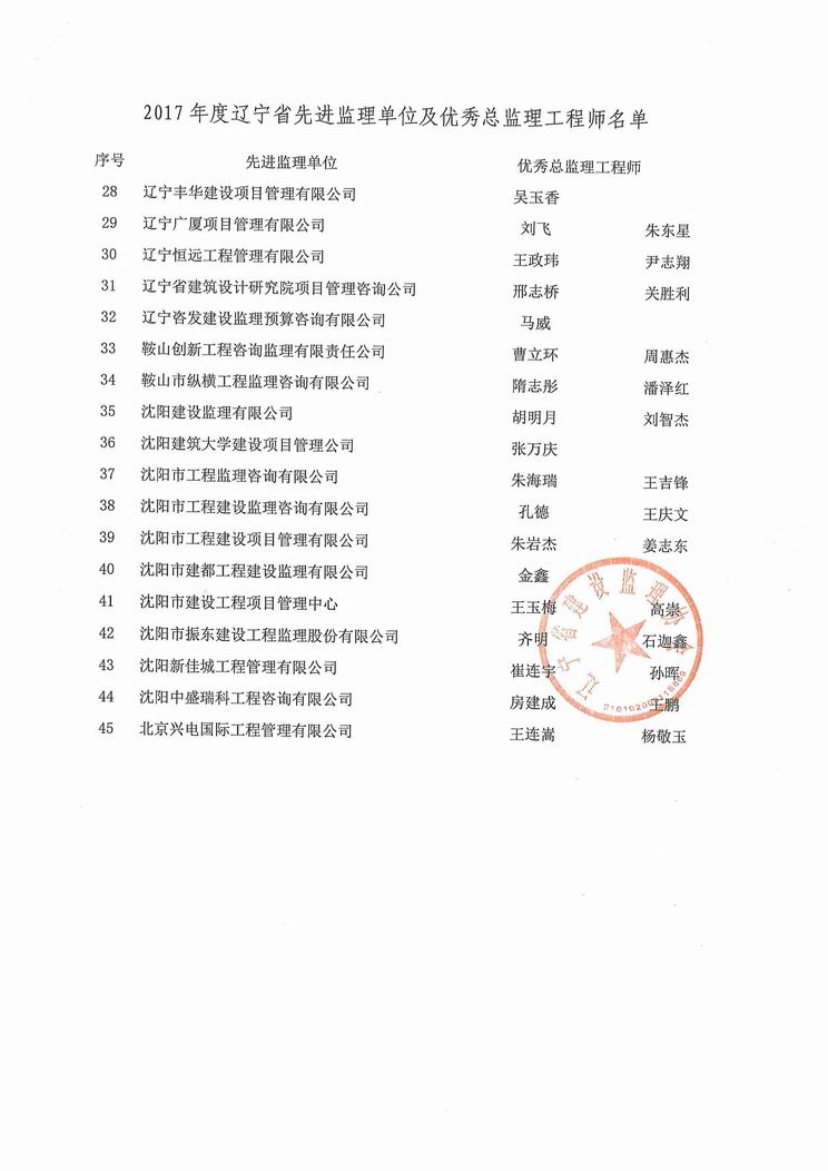 我公司被遼寧省建設(shè)監(jiān)理協(xié)會(huì)評(píng)為2017年度遼寧省先進(jìn)監(jiān)理單位、任潤(rùn)東和馬駿被評(píng)為優(yōu)秀總監(jiān)理工程師